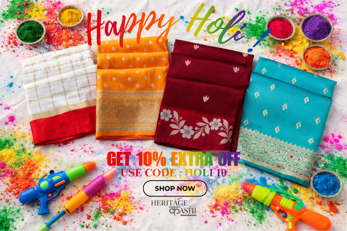 Heritage Kashi offers authentic Banarasi sarees, seamlessly blending tradition with elegance. Sourced from the sacred looms of Kashi, each saree is a testament to generations of master weavers. Meticulously handwoven from the finest silks with intricate zari work, our collection embodies unparalleled craftsmanship. We believe this timeless art should be accessible to all, offering the best pricing to bring these wearable heirlooms to you.